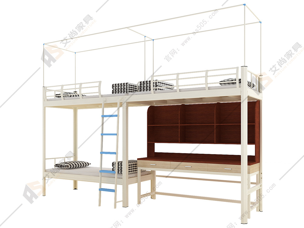 艾尚家具AS-G20這款公寓床,原材料采用的是冷軋鋼板,可以很好的保證床的承重性。鐵床樓梯有很多款式可以支持定做,有側梯,內梯,踏板式的??蛻粢部梢愿鶕约合矚g的搭配進行定制。顏色方面也是可以按照客戶的喜好進行噴塑。我們的樓梯踏板都是設計有防滑紋的,謹防雙腳打滑。