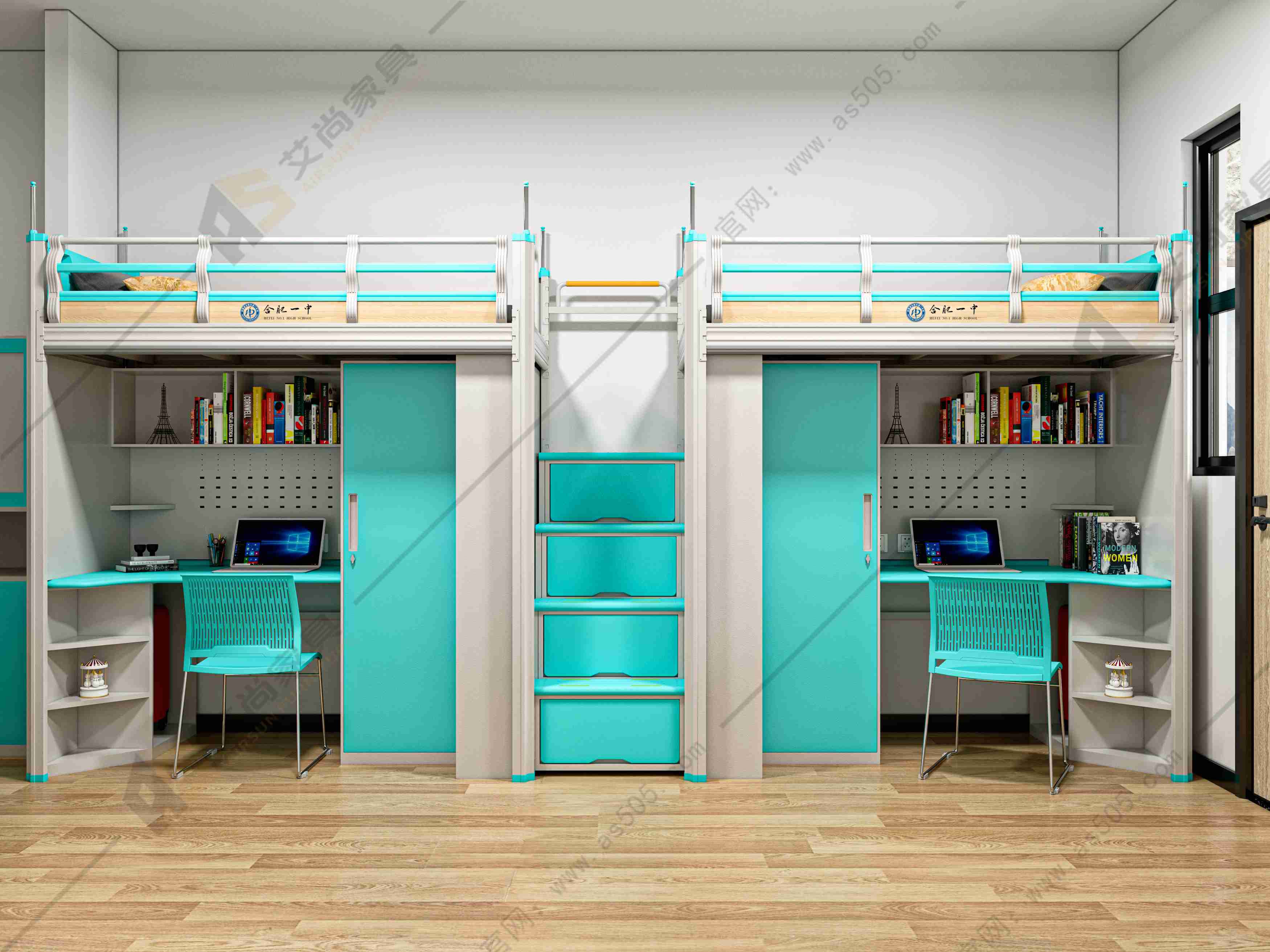 1. 桌柜一體式公寓床,上面是休息區(qū),下面是學(xué)習(xí)區(qū),這種設(shè)計的學(xué)生公寓鐵床很符合學(xué)生生活節(jié)奏,而且又不占空間,布局也好,衣柜,鞋柜等一應(yīng)俱全。