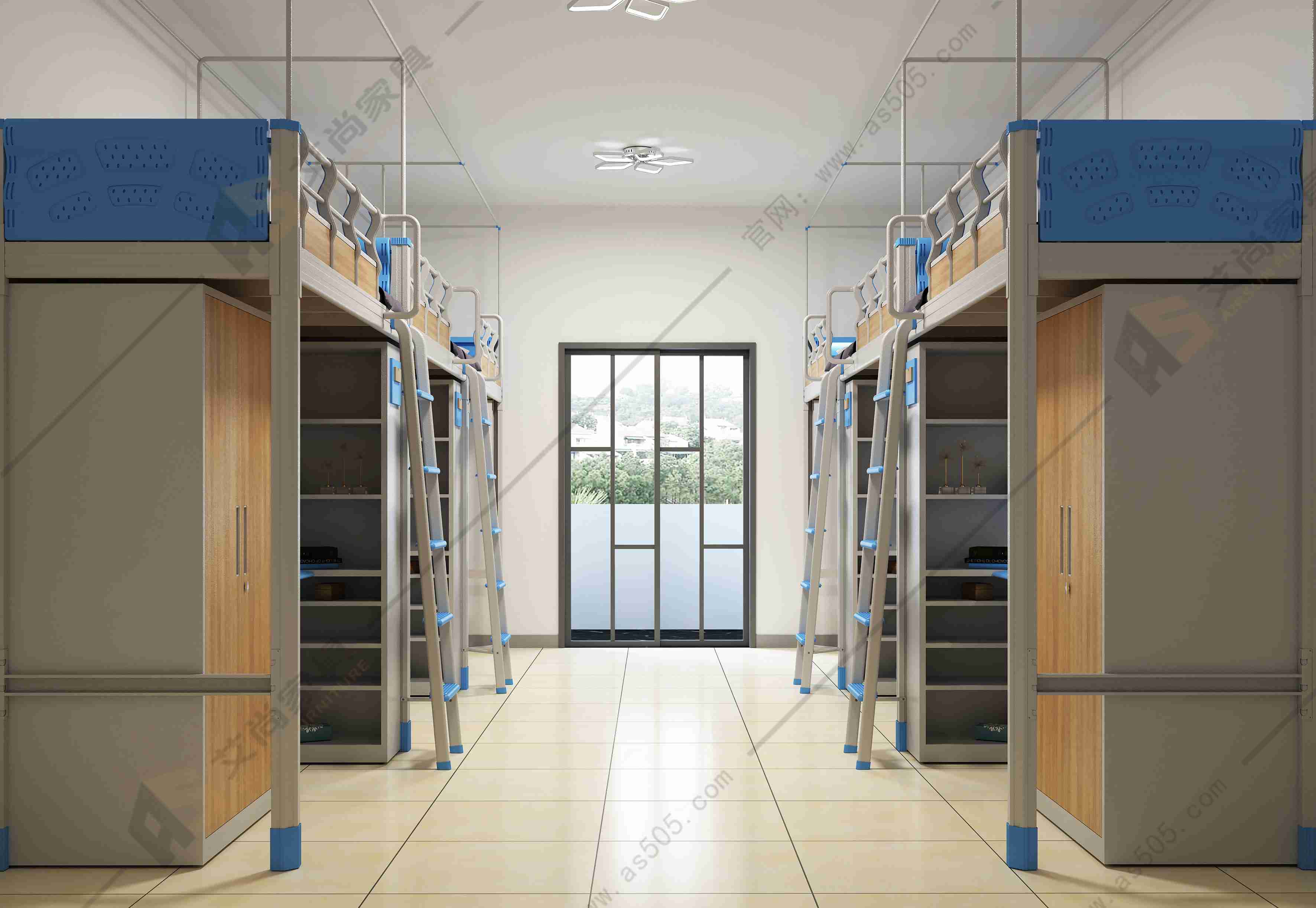 休息娛樂是學(xué)生不可或缺的放松方式,雙層公寓床可以在房間中間留出比較合適的空間,供學(xué)生一起看電影,交流情感等必要的社交活動(dòng),或一起學(xué)習(xí)討論的空間,提高學(xué)生的個(gè)人社交能力。