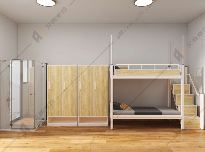 艾尚宿舍上下床可增加儲物柜,在集體宿舍的狹小空間里見縫插針,無論是床頭還是床下,都能合理規(guī)劃,給使用者創(chuàng)造一個整潔有序的收納空間。衣柜也可按需配置,定制指紋鎖,降低使用者財產(chǎn)遺失風(fēng)險。
