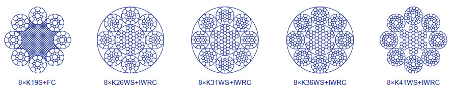 繩結(jié)構(gòu):8×K19S 8×K26WS 8×K31WS 8×K36WS 8×K41WS